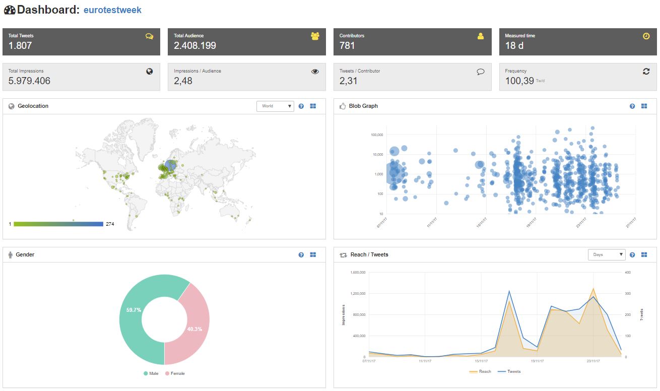 In fact it has proved simpler to look at the campaigns separately. Here is the link to the EuroTestWeek summary (at least 5 retweets) |
